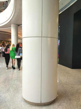 而無縫包柱鋁單板的應用則為大型裝飾場所提供了一個整體簡潔的視覺空間。在變化莫測的建筑設(shè)計中,簡潔平整的包柱設(shè)計反而成為了視覺的另一緩沖點,往往給人以舒適的享受。